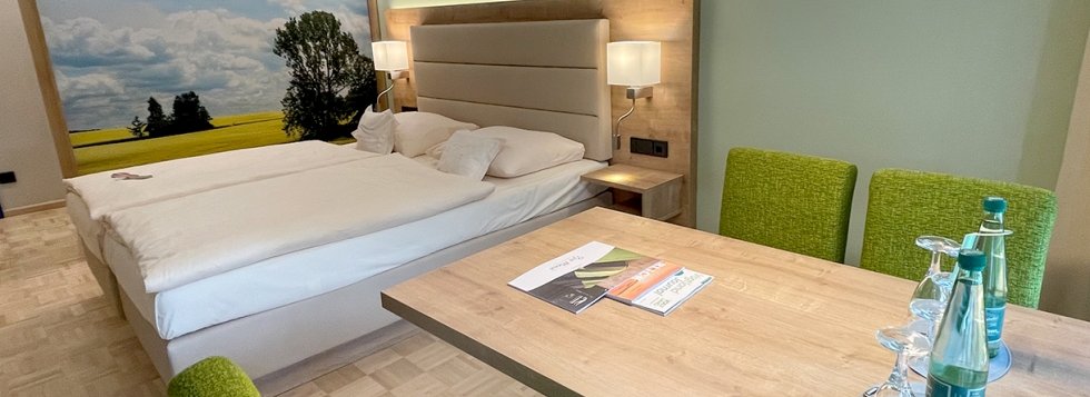 Unsere Familienzimmer bieten Ihnen und Ihren Kindern den perfekten Rückzugsort. Mit zwei separaten Schlafzimmern haben Ihre Kinder ihr eigenes Reich, während Sie in Ihrer Nähe bleiben können. Entspannen Sie sich in unseren gemütlichen Zimmern und genießen Sie dabei den herrlichen Blick auf die Landschaft des Thüringer Vogtlandes.